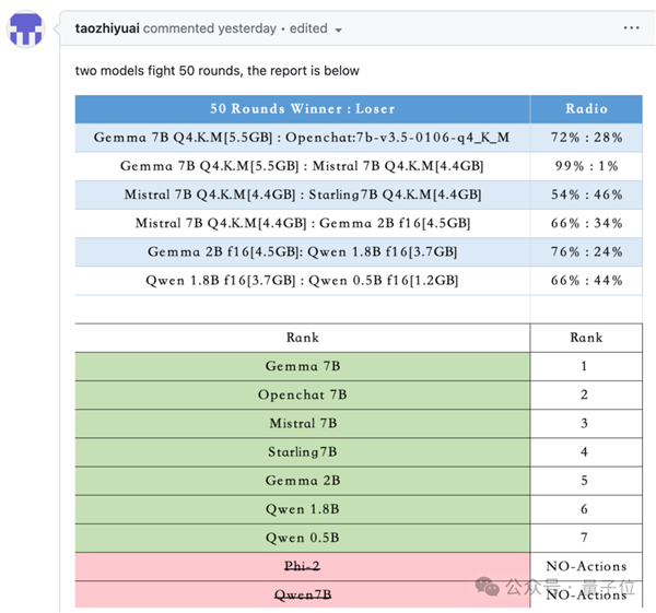 正在试验中发觉?但也需要更长的时间!且由逛戏引擎中确定的法则评判胜负。大模子按照两边血量、肝火值、、上一个动做、敌手的上一个动做等消息做出最优决策。法式向大模子发送屏幕画面的文本描述,更小的模子跨越了更大的如GPT-4和Mistral中杯大杯。再由人类评分分歧街霸Bench引入了两个AI之间的交互,仍是7B模子排名更靠前。两个大模子别离输出谜底,取其他测试方式分歧,但大模子完全领会本身处境并有目标的采纳步履。最新版gpt-3.5-turbo成就断崖式领先,方针是评估大模子的及时决策能力,间接发送坐标值结果欠好。好比仅正在敌手接近时才,开辟者认为,可能的环境下利用特殊招式,